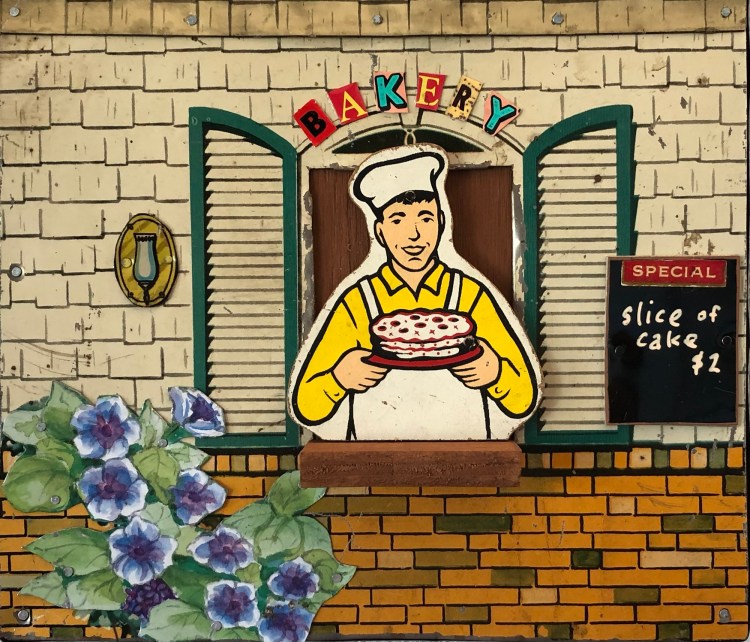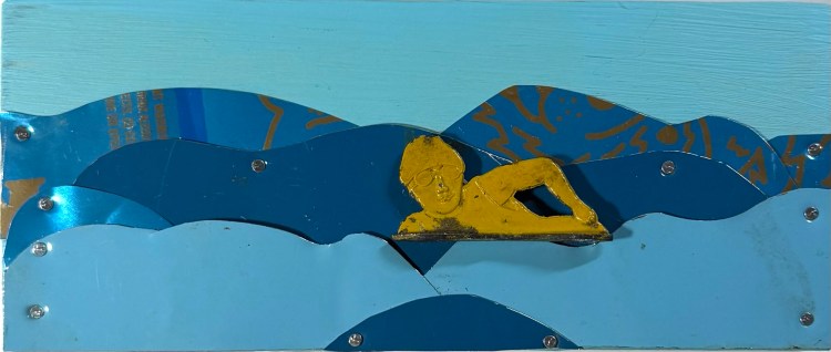 Former cookie tins, coffee cans, tin dollhouses, and other previously loved items, now lend their colorful colors and signs of wear to these whimsical works.